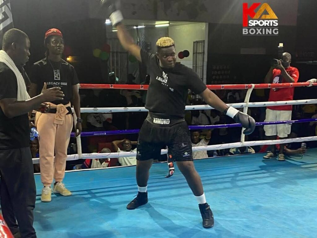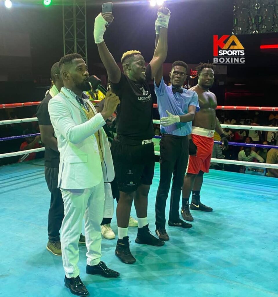 Ghanaian boxing legend Braimah  Kamoko  popularly known as Bukom Banku could not hide his joy as he watched his son, Abu Kamoko, also known as Ambitious Tilapia deliver a thunderous first-round knockout victory over  the weekend. The victory sparked emotional celebrations ringside and reinforced a bold declaration from the proud father, his son is destined to become a world champion. This he said at the 1957 fight night put together by SP sport promotions and PKO boxing promotions in collaborations with T2 bar and Grill on independence night in Koforidua.